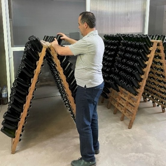 Just when we arrived at the winery, Sr. Gilberto and his son, Guilherme were already waiting for us. Immediately we start with a tour through the winery and its wine making process. Here some employees are turning the bottles with sparkling wines so carefully, the respect and love for what they do can be felt with every move.