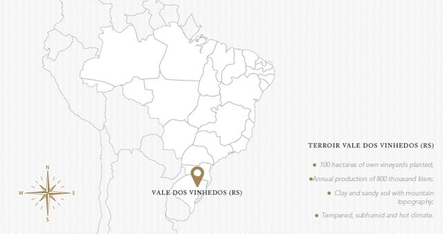 In dit imposante gebouw is het hoofdkantoor van de Miolo Wine Group gevestigd. Gelegen in Vale dos Vinhedos, op het landgoed van Rio Grande do Sul in Brazilië. Dit wijnhuis heeft een lange geschiedenis. In 1897 emigreerde de heer Giuseppe Miolo naar Brazilië vanuit Veneto in Italië en met al het geld dat hij had kocht hij een stuk land in het gebied waar de groep nu gevestigd is. Het stuk land werd genummerd als Lote 43 (Lot 43). Dit is de naam van het icoon van de wijnmakerij, een spectaculaire wijn die alleen in uitzonderlijke jaargangen wordt gemaakt.