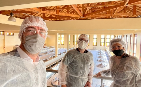 Na een korte rit komen we aan bij de Miolo winery. Wat een indrukwekkende oprijlaan en nog indrukwekkender het prachtige gebouw dat we daar aantreffen. Miolo is een van de grootste wijnhuizen in Brazilië voor stille wijnen en dat merk je meteen. Nadat we ons hebben aangemeld, komt onze contactpersoon Rafael ons ophalen en begint de rondleiding met het beklimmen van de ‘Miolo toren’. Vanaf deze toren kun je het hele wijndomein overzien. Wederom een adembenemend moment!